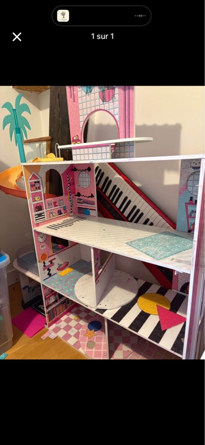 Maison poupée lol Bon état La structure est encore solide . Présente des traces d’usures de feutres ,