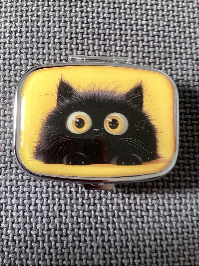 Pilulier rectangulaire un petit chat noir sur fond jaune - photo numéro 4
