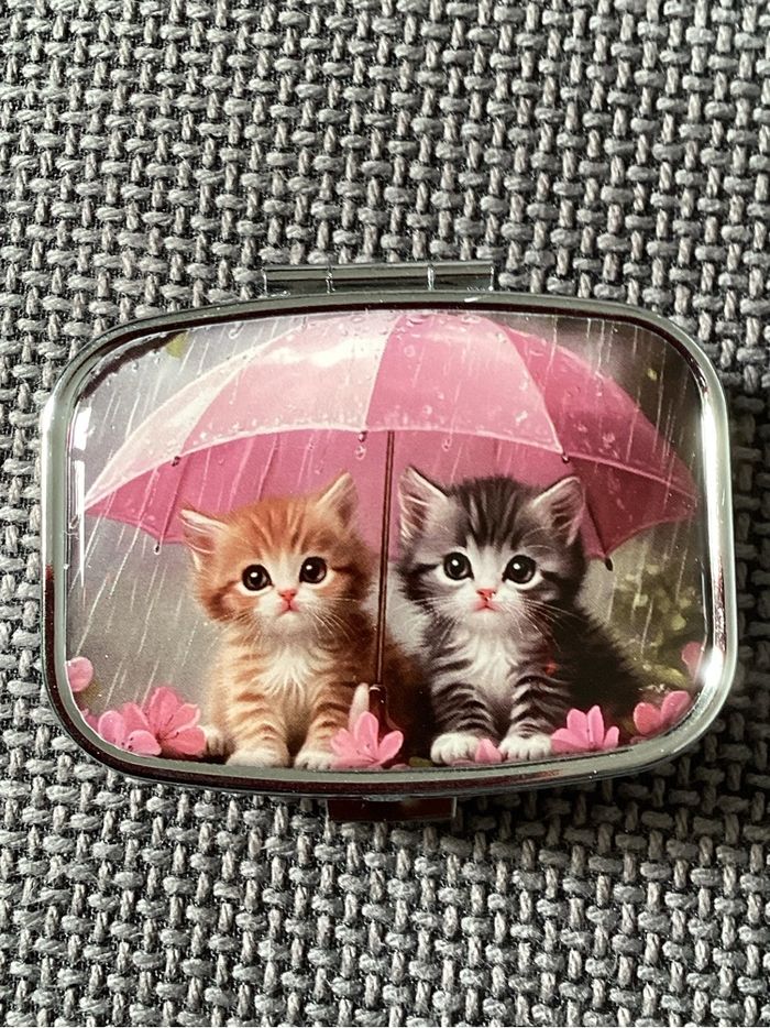 Pilulier rectangulaire 2 adorables petits chats sous un parapluie rose - photo numéro 3