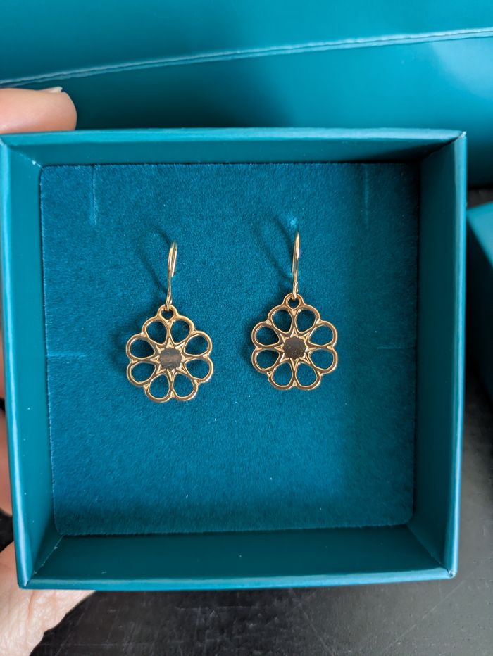 Jolie boucles d'oreilles neuves, jamais portée, ✨Les Georgettes ✨ dorée , possibilité de mettre des cuirs pour un effet coloré 🌼