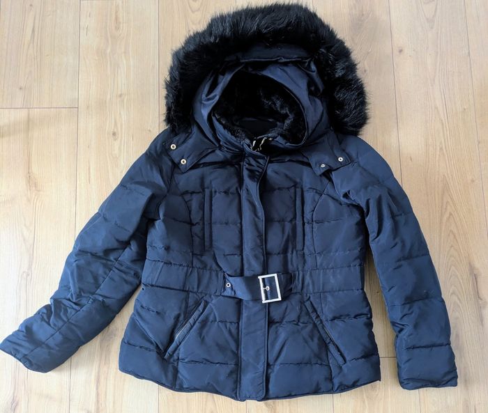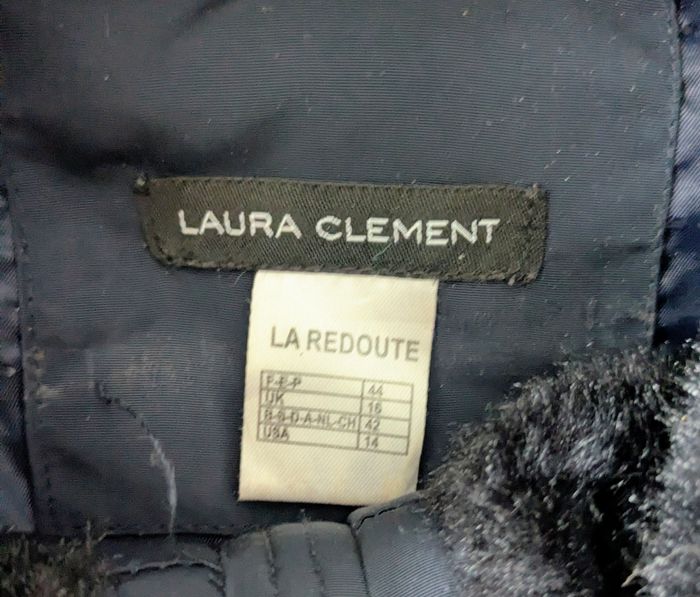 Doudoune femme neuve, marque Laura Clément. Couleur bleu marine , la fourrure peut s'enlever. Il y a une ceinture. Taille 44. Dispose de plusieurs poches. Non portée.