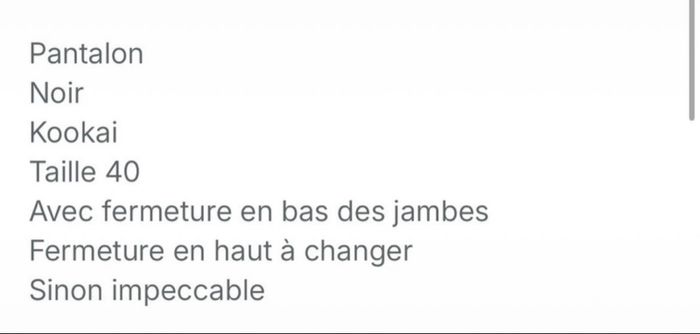 Pantalon Kookai Taille 40 Noir Fermeture en bas du pantalon fonctionnel Fermeture en haut à réparer ou changer Sinon pantalon quasi neuf