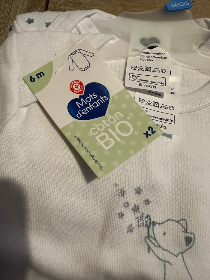 Lot de 2 bodies neufs en taille 6 mois . Coton bio . Manches longues