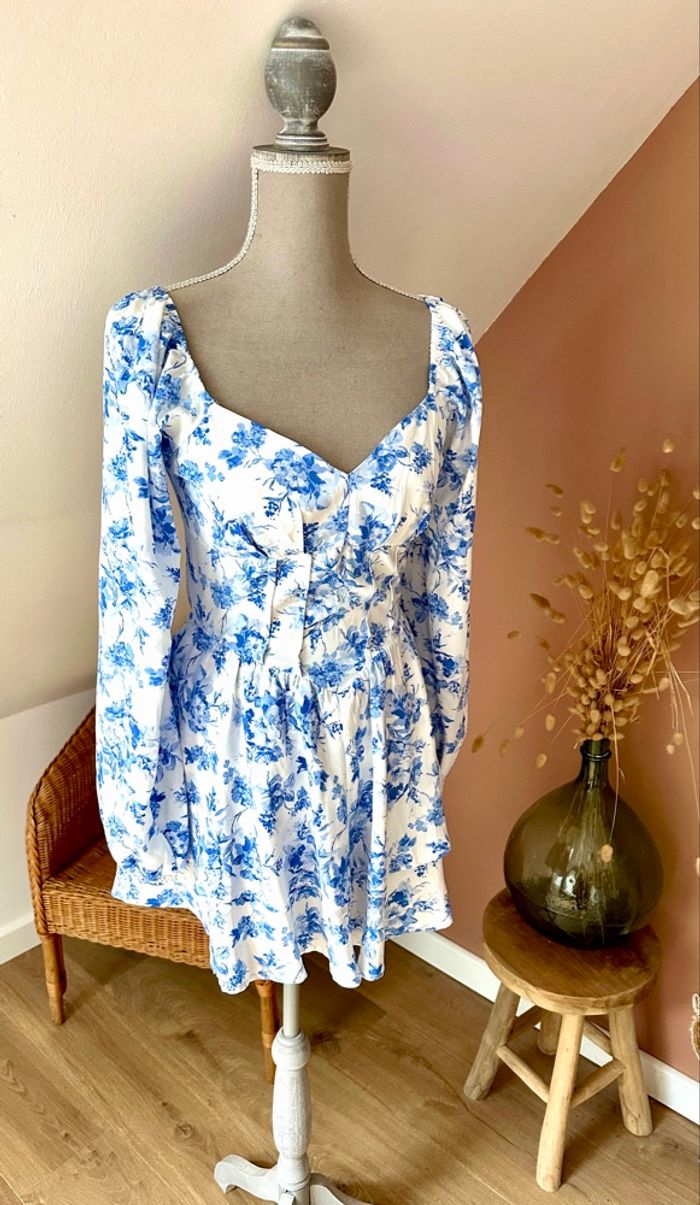 🍁 Combishort blanc & bleu fleuri – D&M – Taille S – Très bon état - photo numéro 2