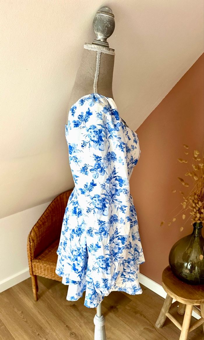 🍁 Combishort blanc & bleu fleuri – D&M – Taille S – Très bon état - photo numéro 5