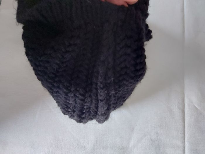 Bonnet noir en mailles, avec fleur en crochet TB état