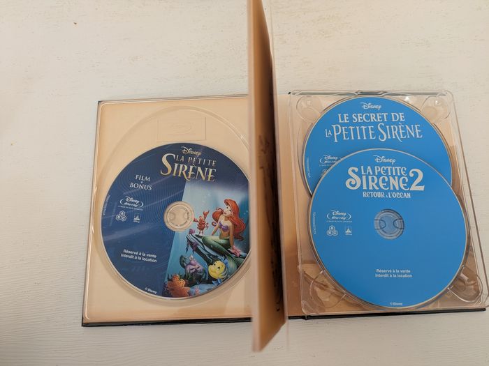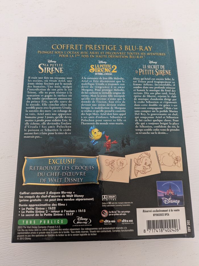 Coffret prestige 3 blu-ray de la petite sirène 🧜🏻‍♀️ (1,2,3) ainsi que le croquis collector de Walt Disney. Aucune rayure, en excellent état !