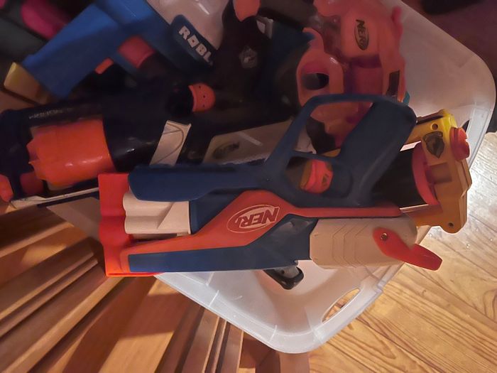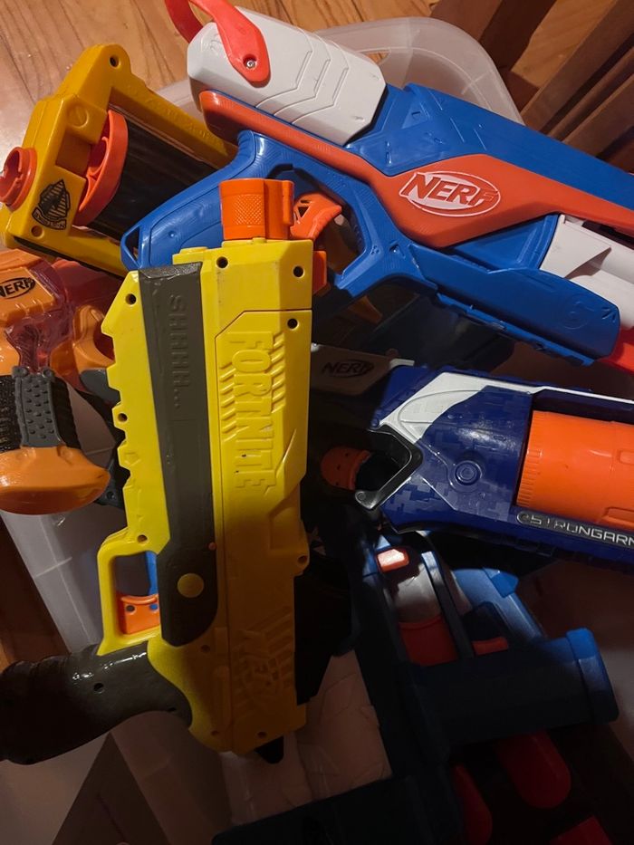 Je vend un lot de pistolet nerf ( roblox , fortnite , nerf simple ) Entre 10et 12 pistolet ! + cible nerf Certain pistolet (roblox ) fonctionne à pile