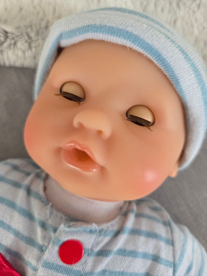 En très bon état le bleu, Les yeux ne sont pas abîmés. Toutes les deux propres et lavées. Le rose est en bon état mais plus vintage. Moins rembourré. Lot des deux Corolle. Poupons de 30cm.