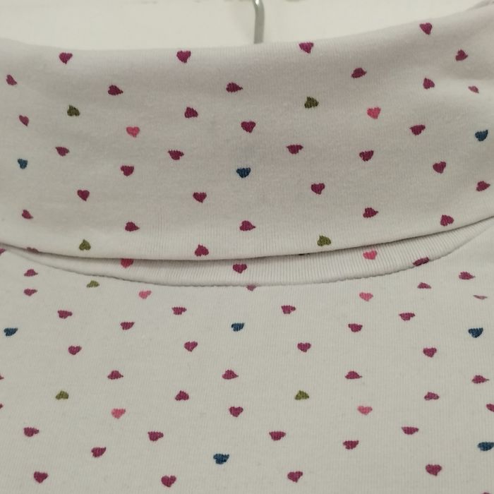 Sous pull pour fille de 7/8ans, de H&M. Blanc avec motifs petits cœurs : rose violet bleu vert.