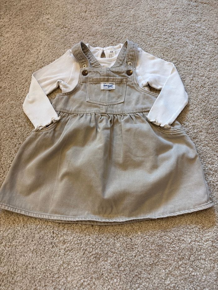 Ensemble fille H&M T-shirt manches longues blanc Robes à bretelles réglables 2ans (92cm)