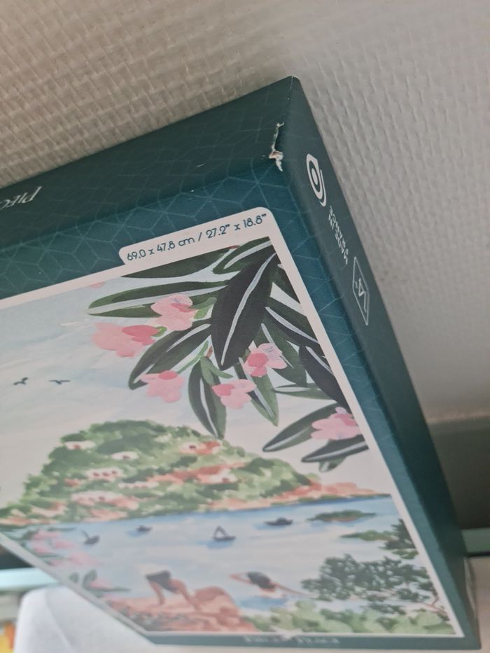 Un côté de la boîte légèrement abîmé.