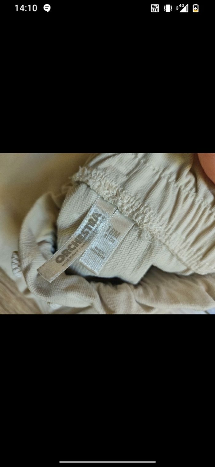 Lot de 2 pantalons joggings de marque Orchestra, bleu marine et beige taille 18 mois en très bon état.