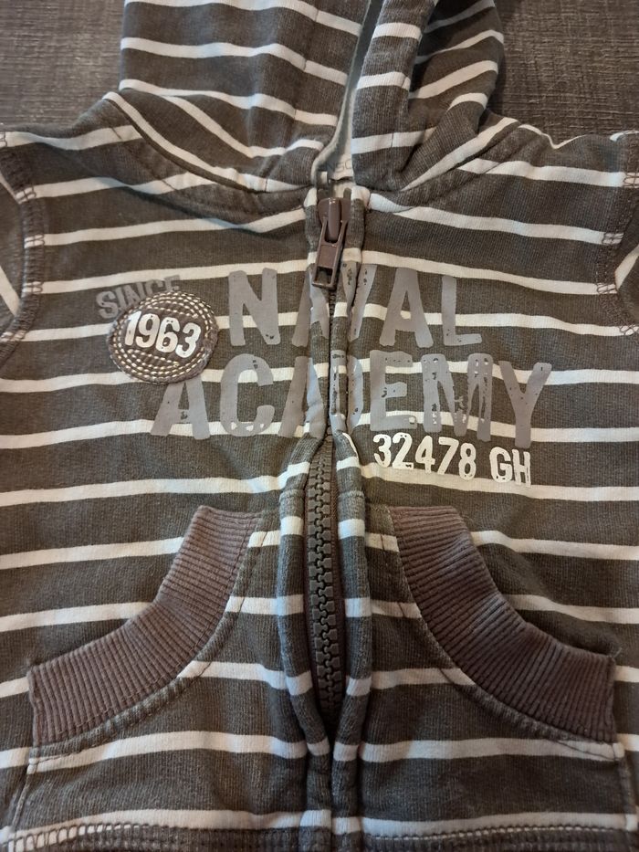 Veste a capuche gris à rayure blanche Marque in extenso Taille 6 mois Réduction sur les lots jusqu'a -20% Réduction sur les frais de livraison