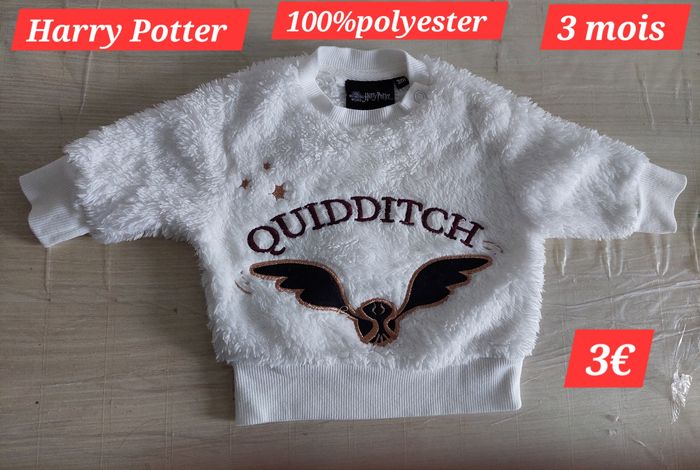 Vends Pull Harry Potter fille 3 mois Il est en très bon état car très peu mis Maison non fumeur Le prix d'achat est indiqué sur la photo 1