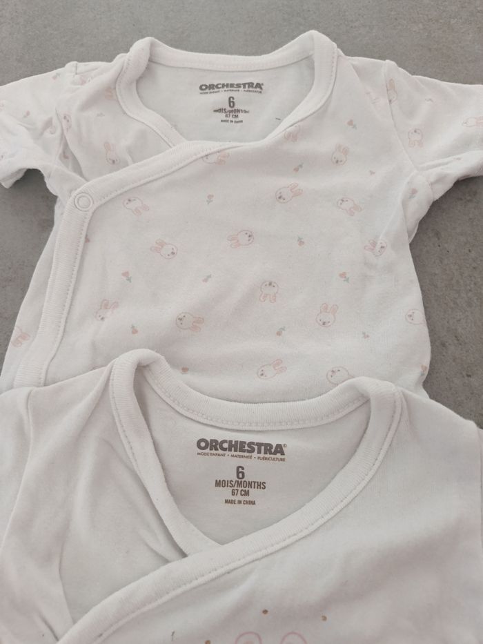 Lot de 2 bodies en très bon état Marque orchestra Taille 6 mois