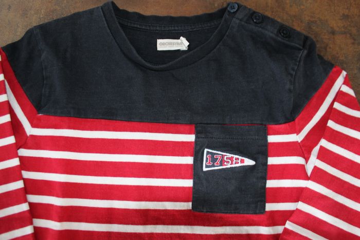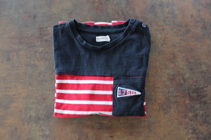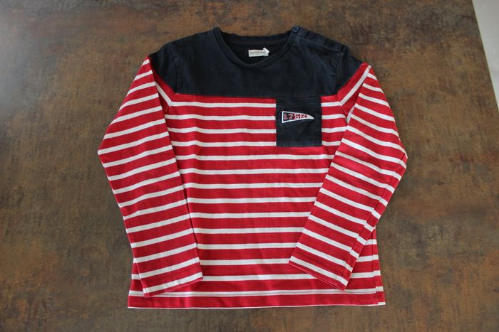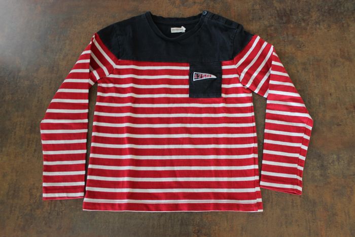 Un essentiel pour un look marin réussi ! Le t-shirt présente un motif à rayures rouges et blanches, agrémenté d'un col bleu marine. Un détail de poche avant est visible, agrémenté d'un petit motif brodé. L'épaule gauche est dotée de boutons pratiques. Manches longues, parfait pour une transition saisonnière. Bon état. Sans trou ni taches. N'hésitez pas à faire un lot sur mon dressing. Réductions activées.