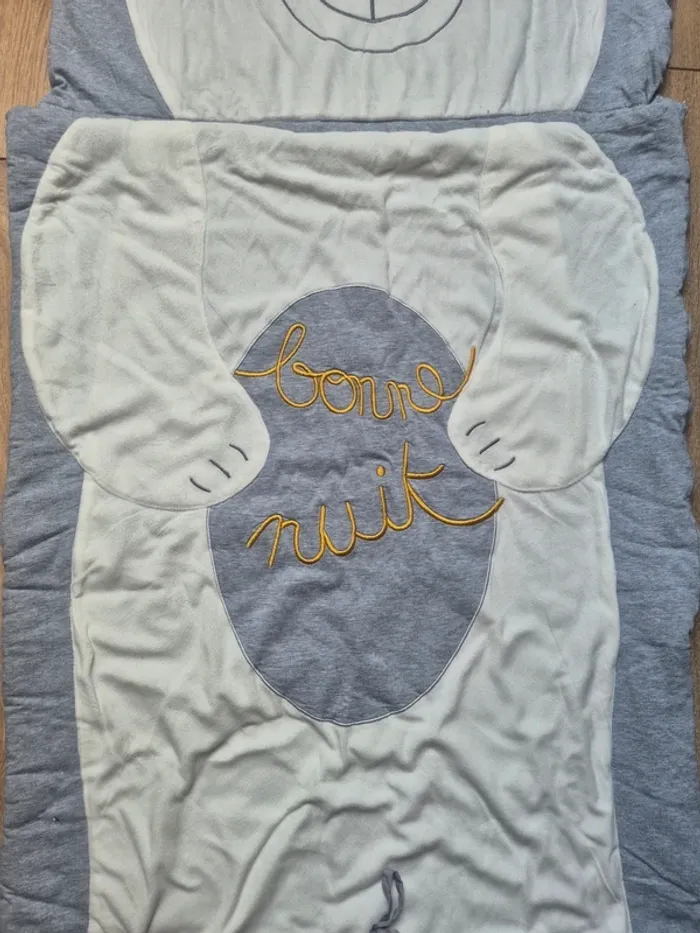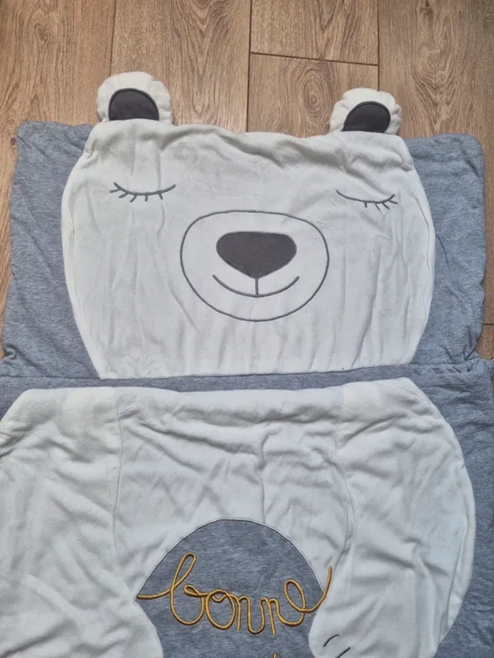 Sac de couchage enfant vertbaudet blanc et gris motif ourson en parfait état - photo numéro 8