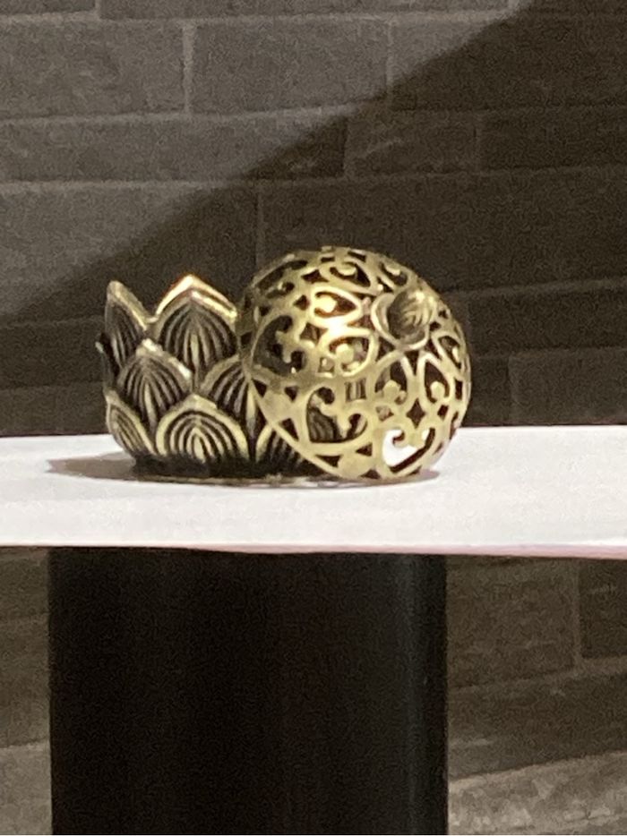 Brûle encens fleur de lotus au couvercle amovible avec de très beaux détails coloris doré