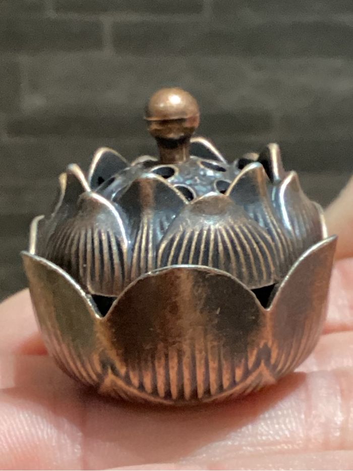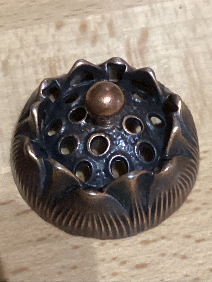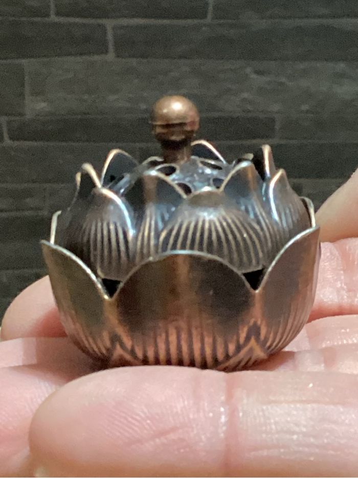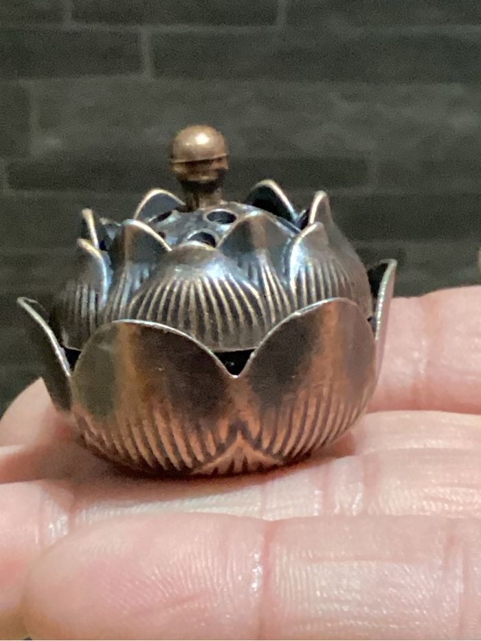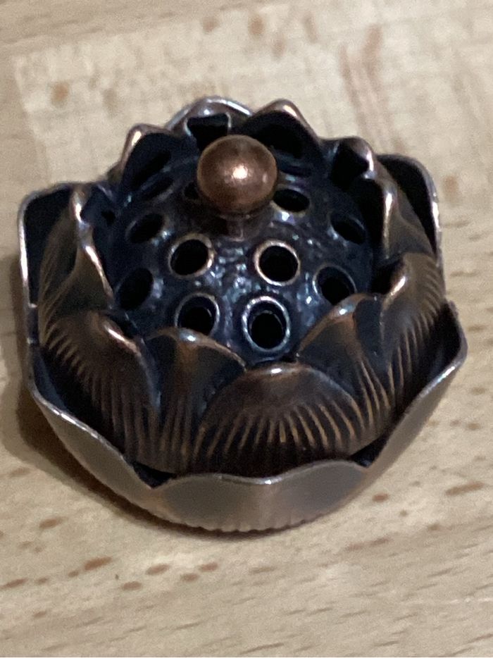 Brûle encens fleur de lotus au couvercle amovible avec de très beaux détails coloris cuivré  - photo numéro 1