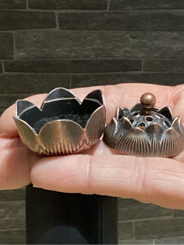 Brûle encens fleur de lotus au couvercle amovible avec de très beaux détails coloris cuivré  - photo numéro 7