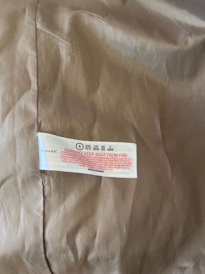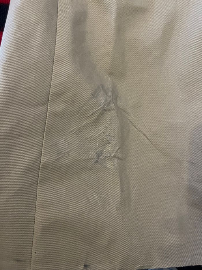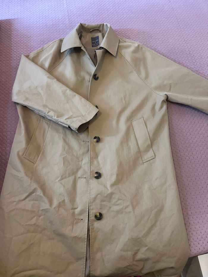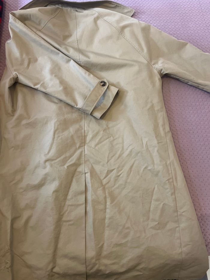 Trench pas énormément porté à des défaut tout en bas au dos à cause du placard sinon mise à part ça en parfaite état or le fait qu’il sois froissé