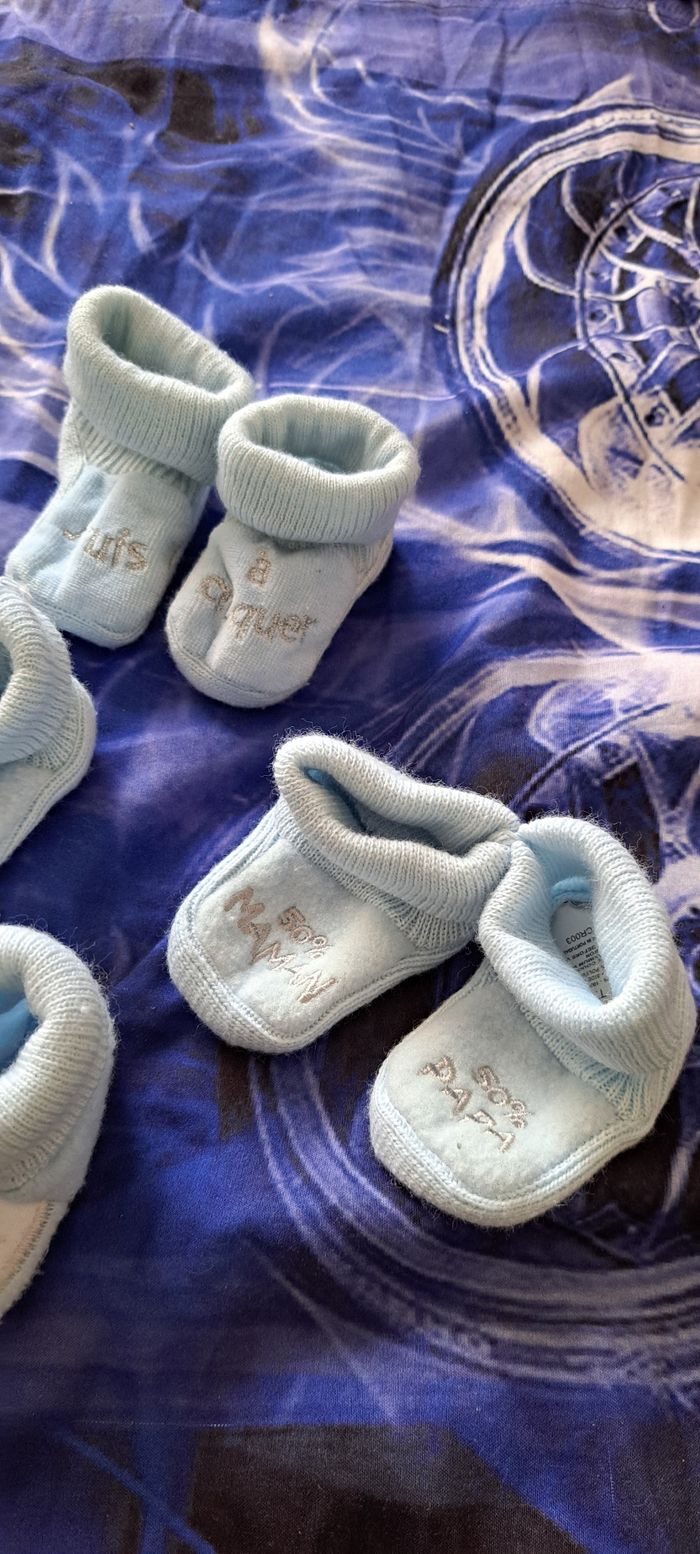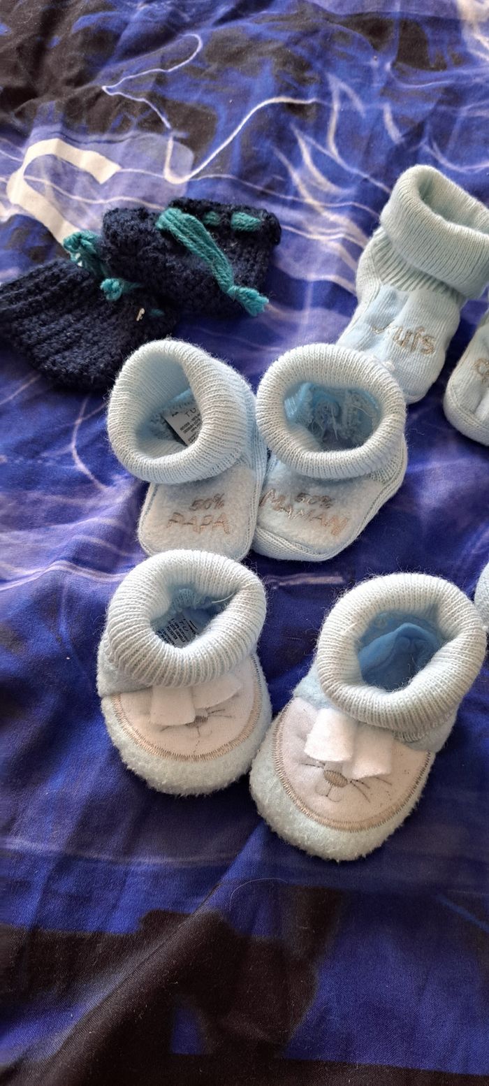 Lot chaussons bebe Dont 1 neuf Et 1 fais main en laine