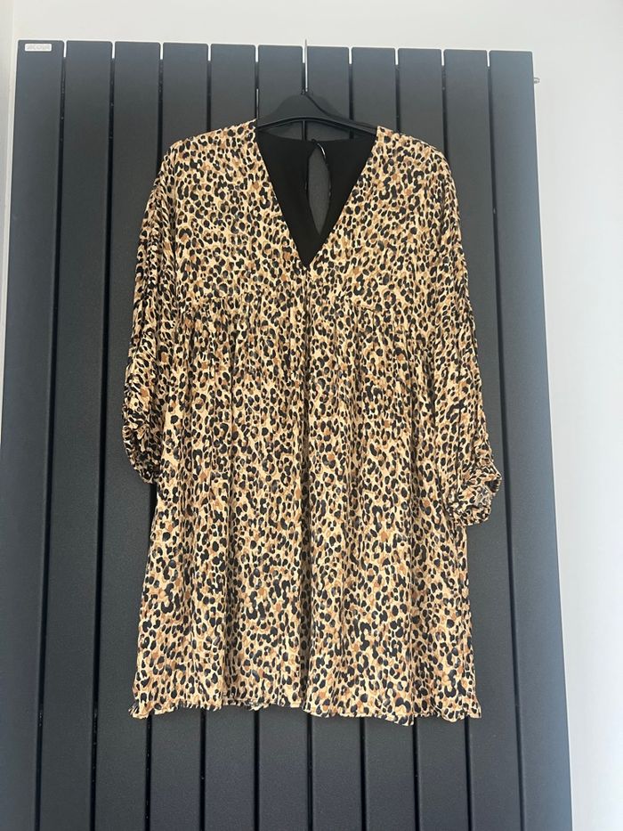 Jolie robe léopard pour être pile dans la tendance! Forme qui s’adapte à toutes les morphologies. Elle est entièrement doublée. Manches 3/4. Peut se porter en toute saison ! L’hiver avec des collants et des bottes, l’été avec des sandales ou des baskets. En très bon état!