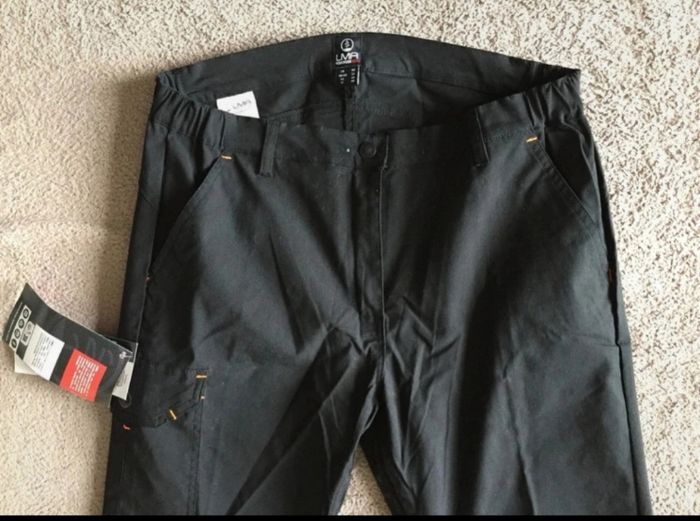 Neufs avec étiquettes, très joli pantalon de travail de la marque LMA en taille 40. Modèle femme mais convient également à un homme. Disponible aussi en taille 44. Super qualité, confortable, bien pensé, résistant et très agréable à porter. 60% coton, 38% polyester et 2% élasthanne. Prix en boutique 39,99€ Envoie rapide et soigné pensez à faire des lots pour profiter de réductions automatiques et économiser sur les frais de port. Bon shopping