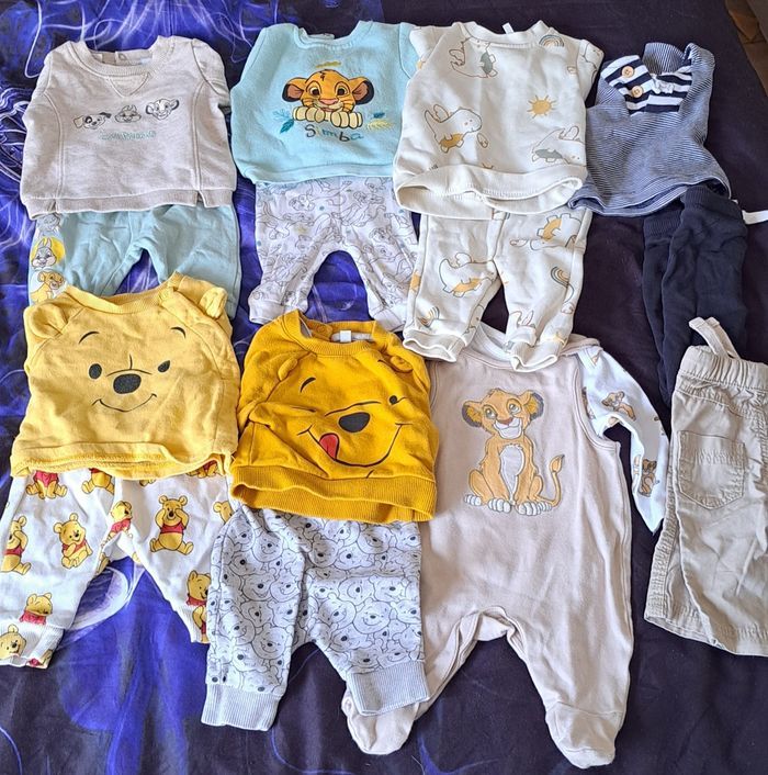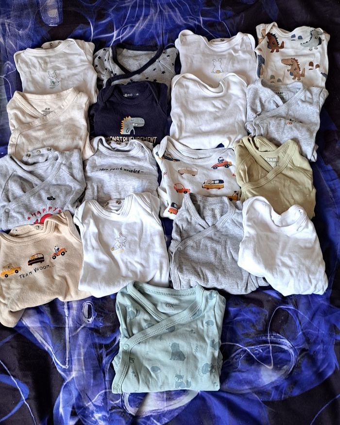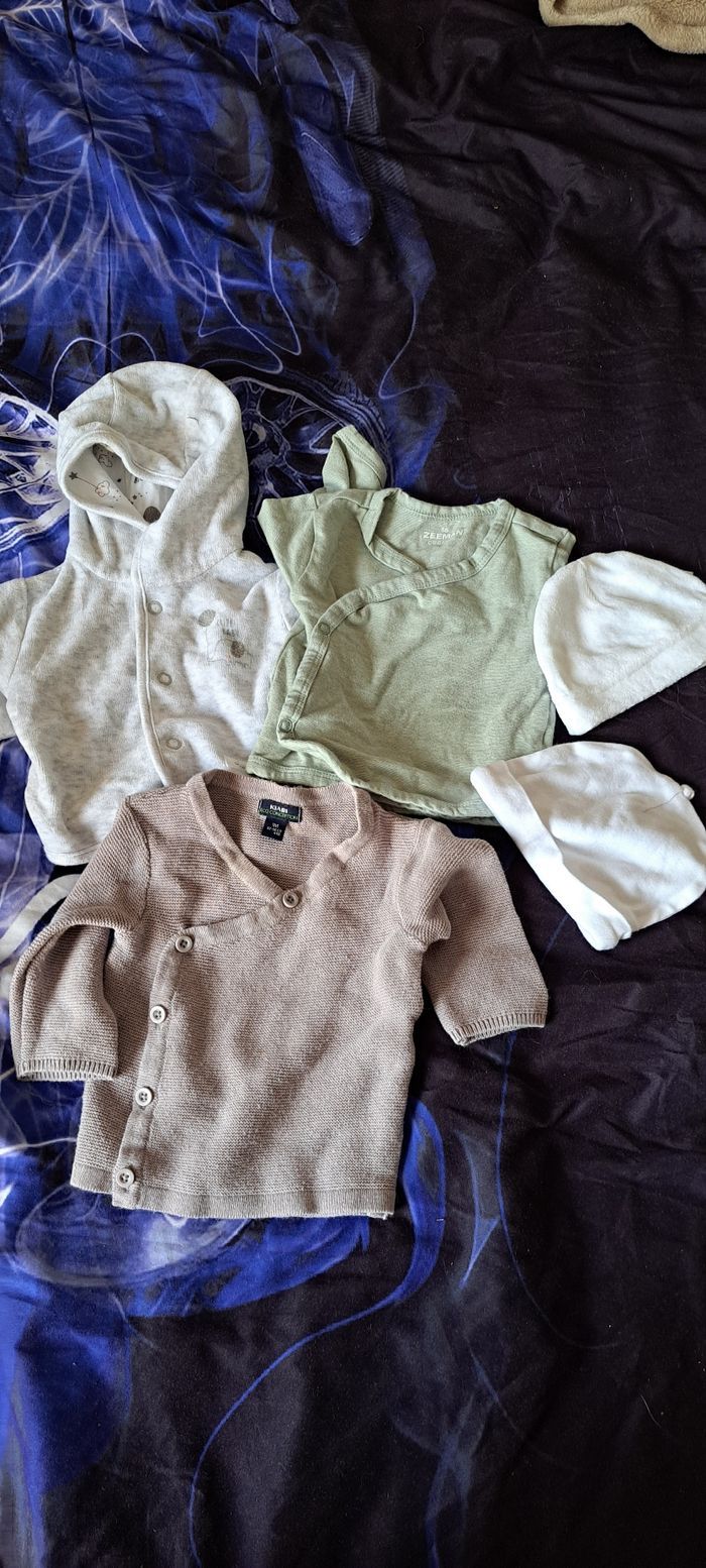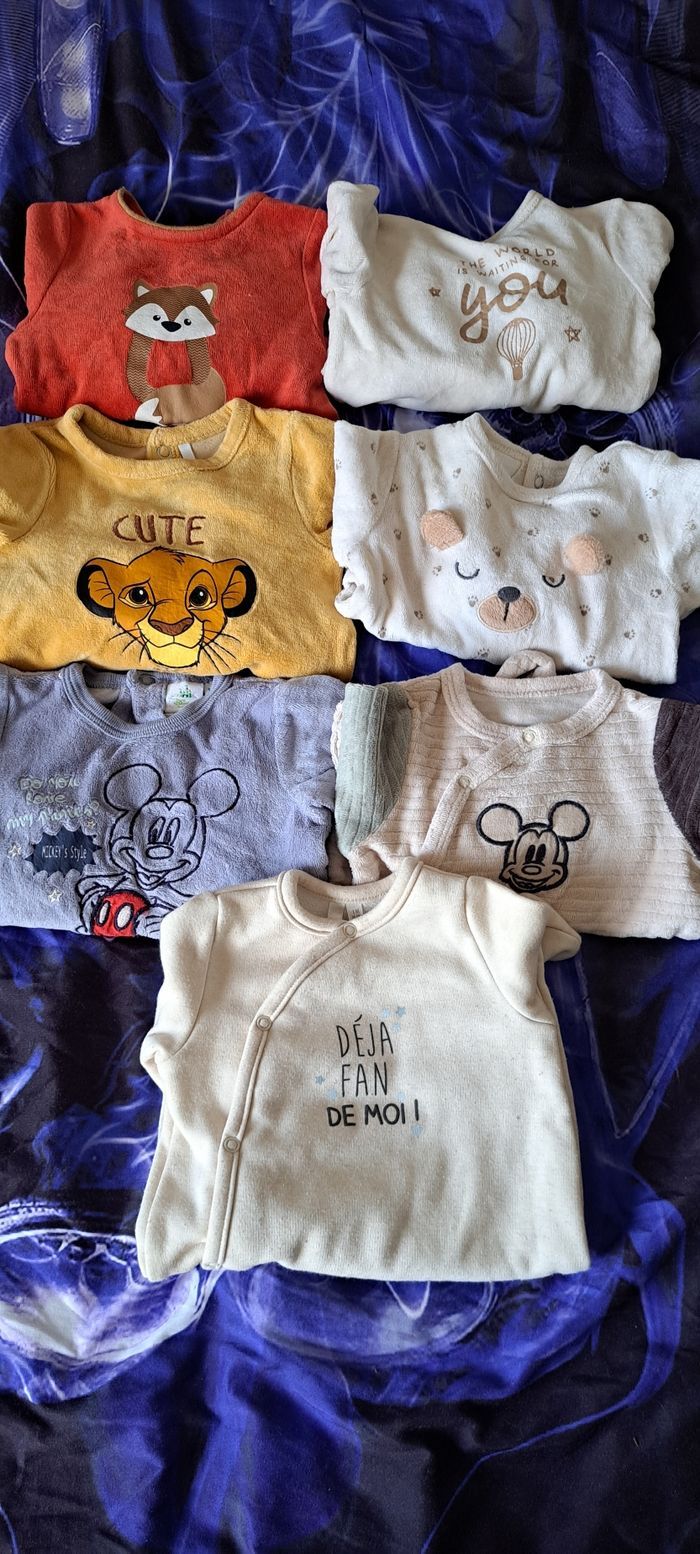 Comprend 7 pyjama 17 bodies 6 ensemble 1 pull fin 2 pantalon 3 gilets 3 bonnet Diverse marque