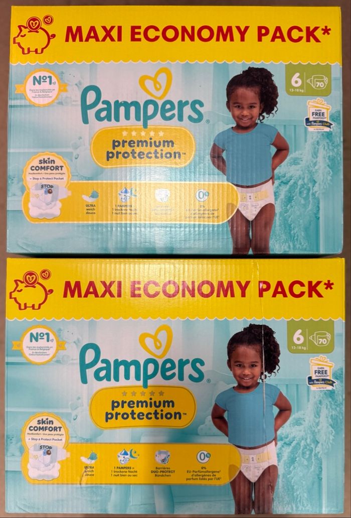 2 cartons de 70 couches Pampers Premium Taille 6
