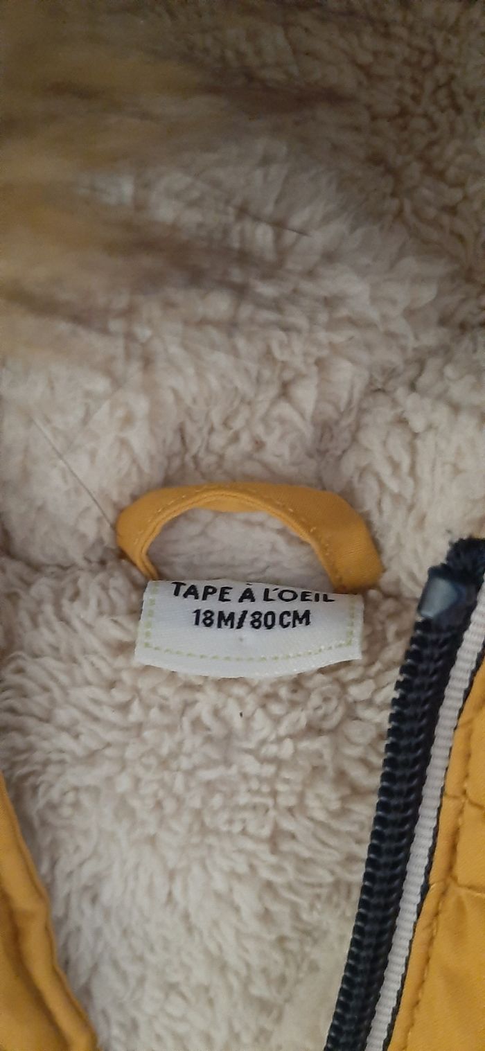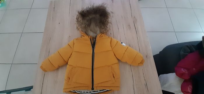 Manteau très chaud jaune avec fourrure à la capuche 18 mois