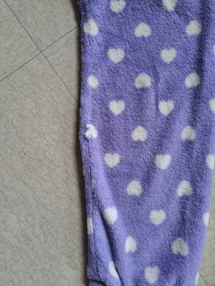 Pyjama polaire fille / T. 10 ans / " Zeeman ". Petit point de couture sur le coté de la jambe, même pas 1 cm ( photo 2 ), se voit pas au porté, sinon bon état.