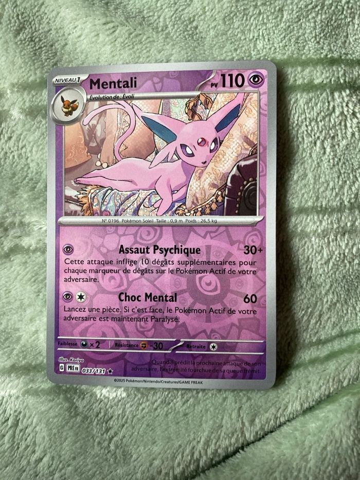carte Pokémon Mentali (Espeon en anglais), numérotée 033/131, issue de l'extension Écarlate et Violet : Évolutions Prismatiques (SV8.5) sortie début 2025