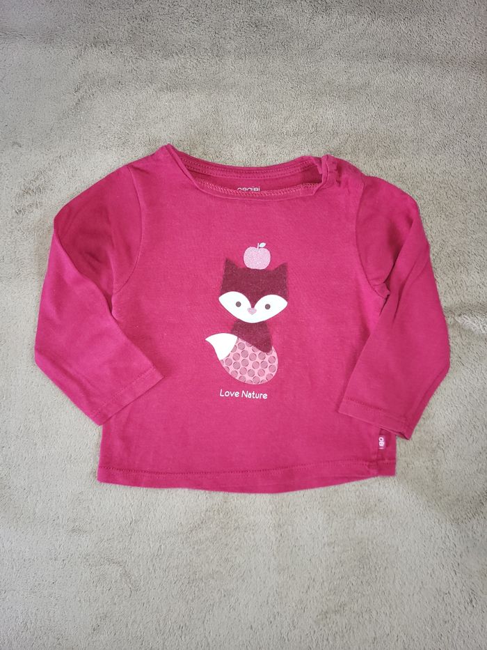 T-shirt manches longues rose foncé Obaïbi Motif renard #virgy61fille12mois