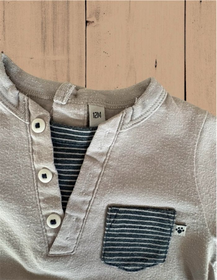 Pull fin ML garçon – 12 mois – Gris – Motif ours – Bon état - photo numéro 3