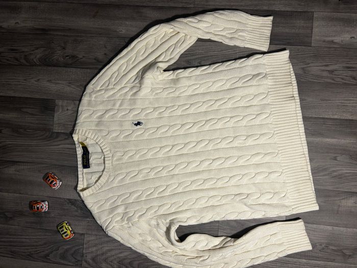Pull Ralph Lauren blanc câble knit torsadé - logo brodé - photo numéro 1