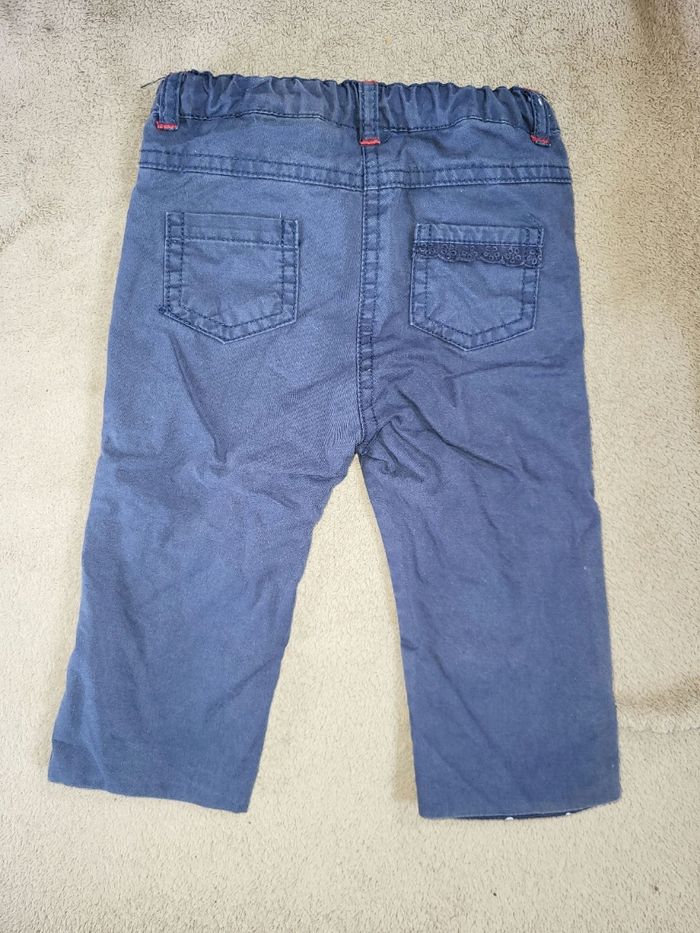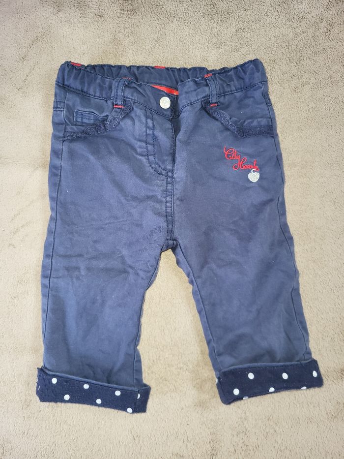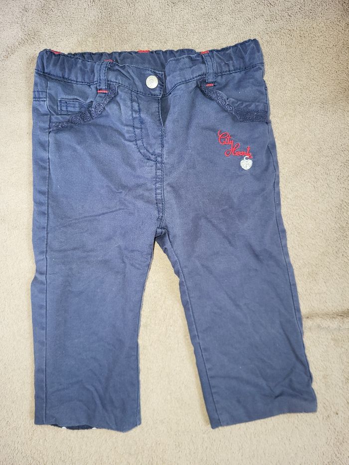 Pantalon bleu marine Tissaia Broderie coeur écriture rouge Peut être porté avec un ourlet bleu à poids blancs #virgy61fille12mois