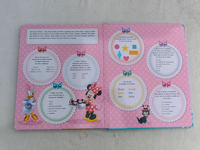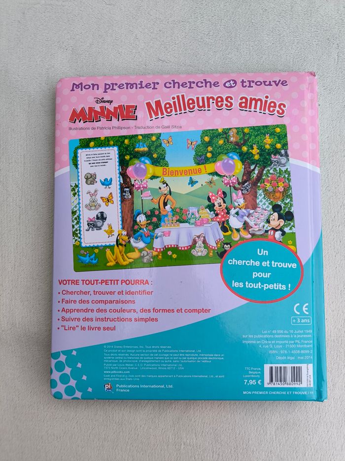 Livre mon premier cherche et trouve Meilleures amies, n°11 Éditions Disney, Pikids À partir de 3 ans • Pages cartonnées • Minnie, Daisy • Jeux bonus • Intérieur du livre en très bon état • Coins abîmés En très bon état #evelyne_livres