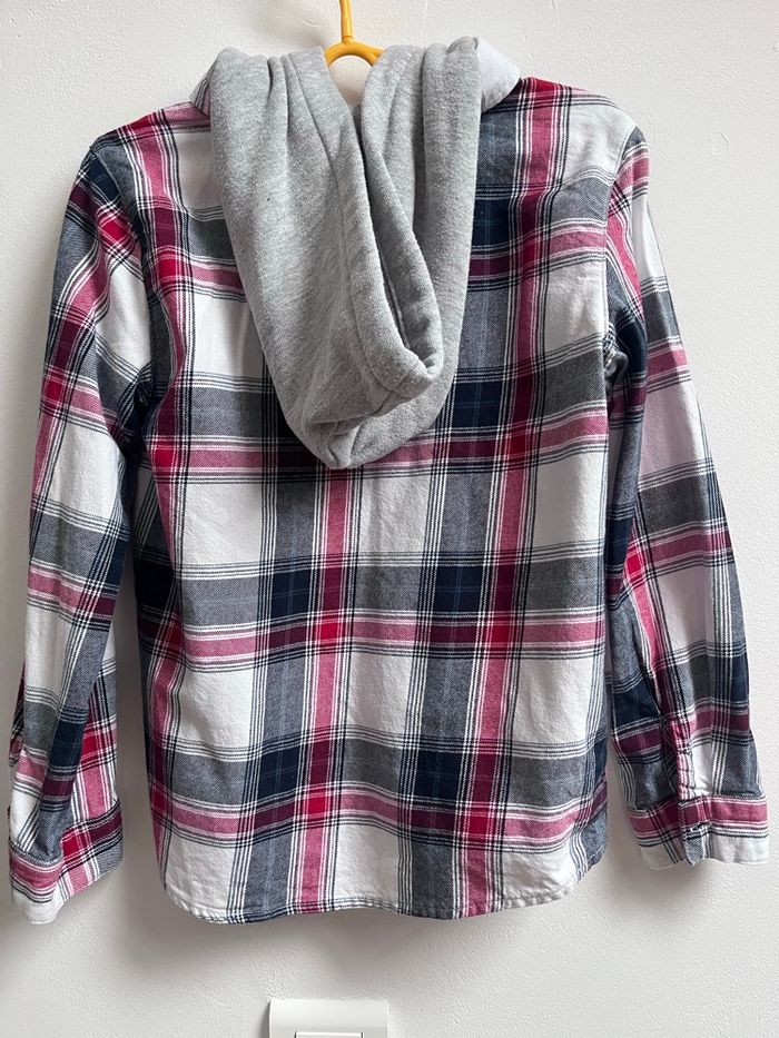 Bonjour, vends chemise à capuche. Capuche amovible. Tape à l’œil 8ans