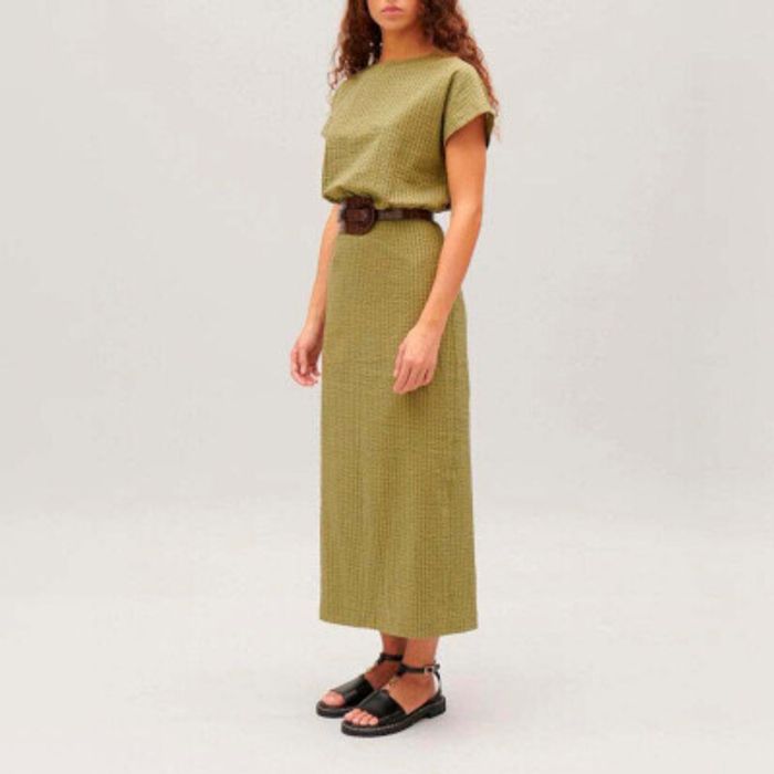 Robe Midi Claudie Pierlot Vert Olive – Coupe Droite Fendue Chic – Taille 36/S - photo numéro 1