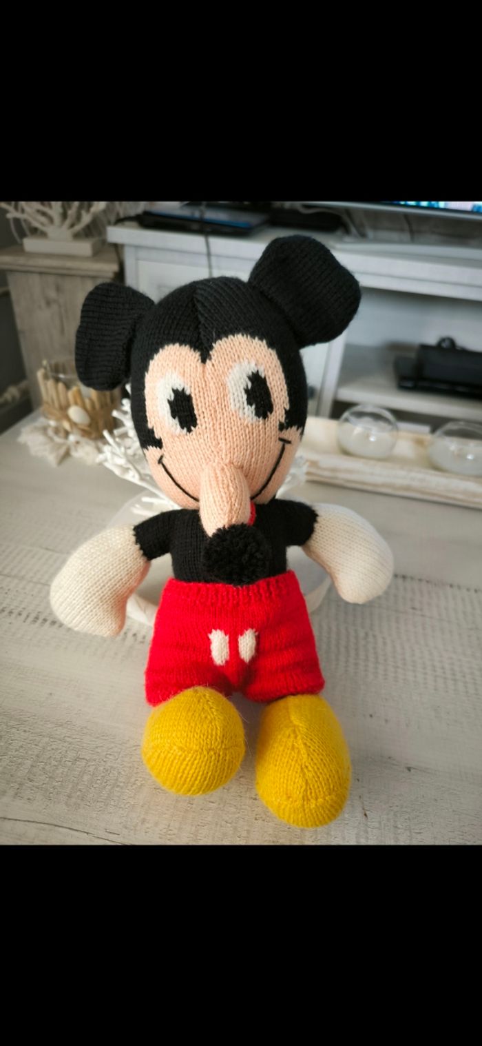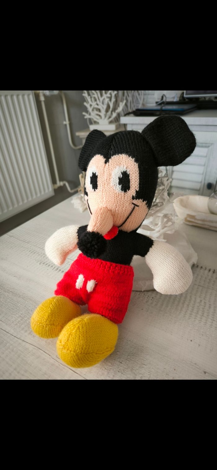 Mignonne peluches Mickey Fait entièrement à la main au crochet Très bon état Hauteur 38 cm Prix non négociable