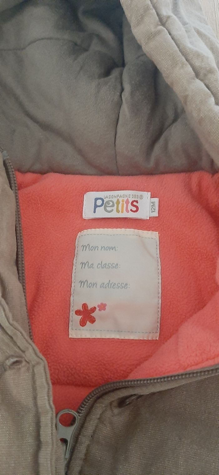 Manteau hiver 12 mois marron intérieur rose en polaire