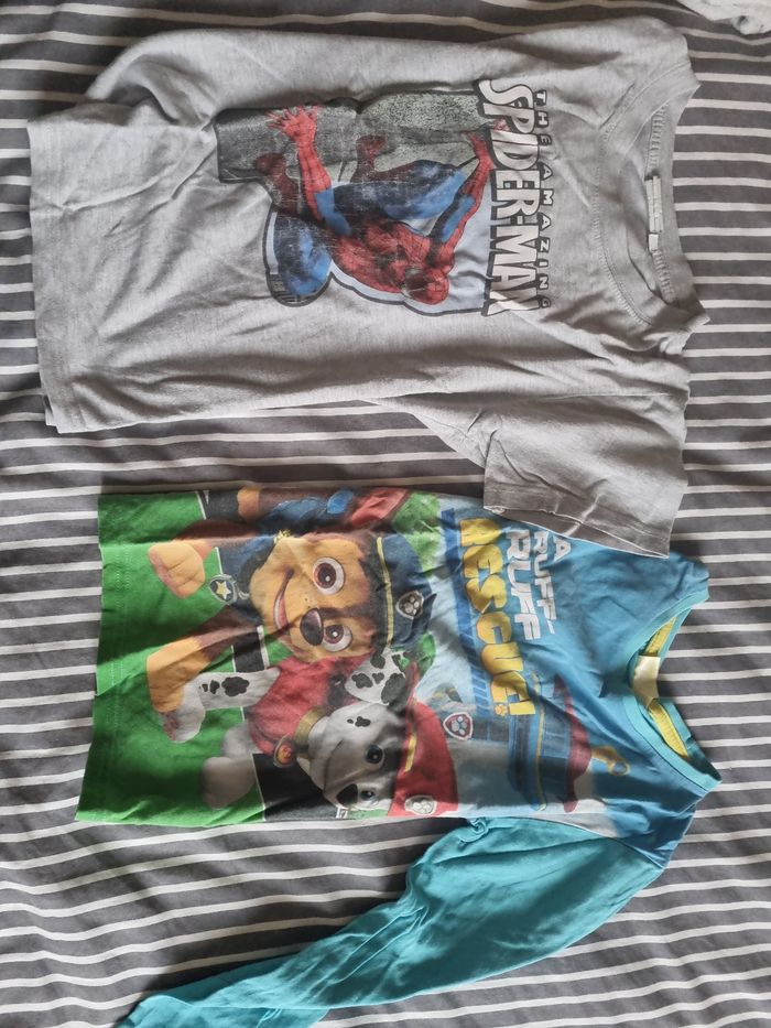 Lot de 6 vêtements garçon 6ans -1 ensemble pyjama -2 short sport -1 t-shirt manches longues pat patrouille -1 t-shirt manches courtes spiderman -1 bas de jogging