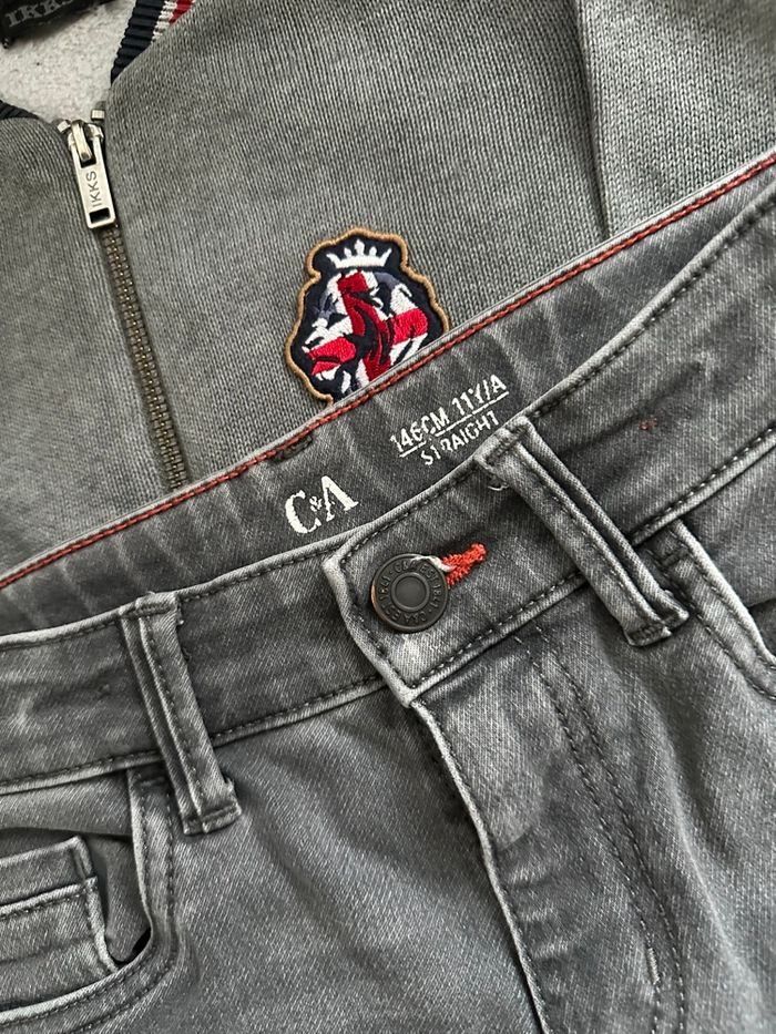 Lot composé 1 jean 11 ans h&m peu porté, quasiment neuf 1 t-shirt manches longues ikks 10 ans 1 gilet ikks 10 ans