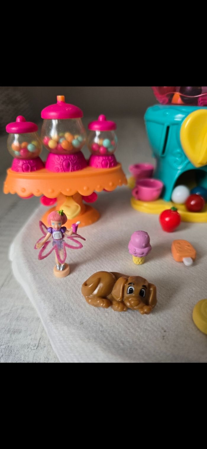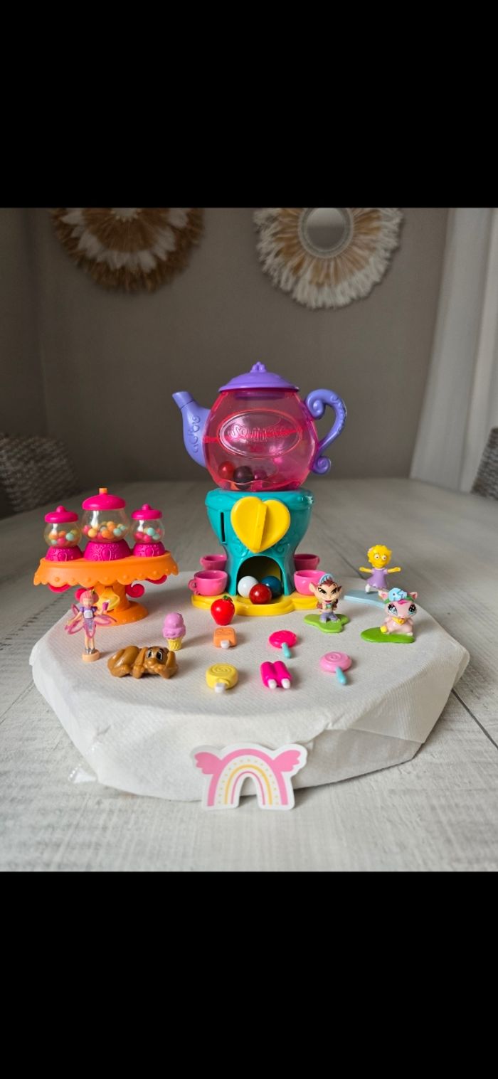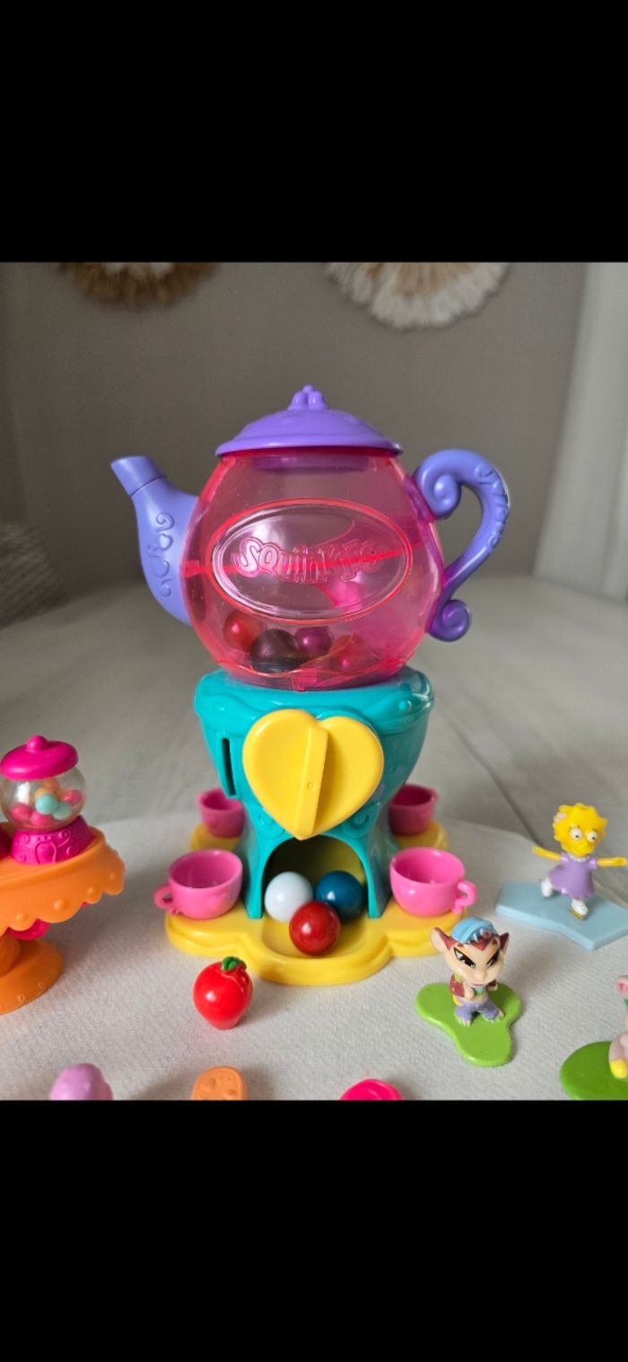 Théière ou on tourne le bouton et des billes tombe , il faut appuyer sur le bouton vert avant de tourner le cœur Bar à bonbons Figurines neuves, le petit lapin qui est dans ma main avec les 2 autres a été oublié sur la photo globale mais fait parti du lot État neuf *Prix non négociable