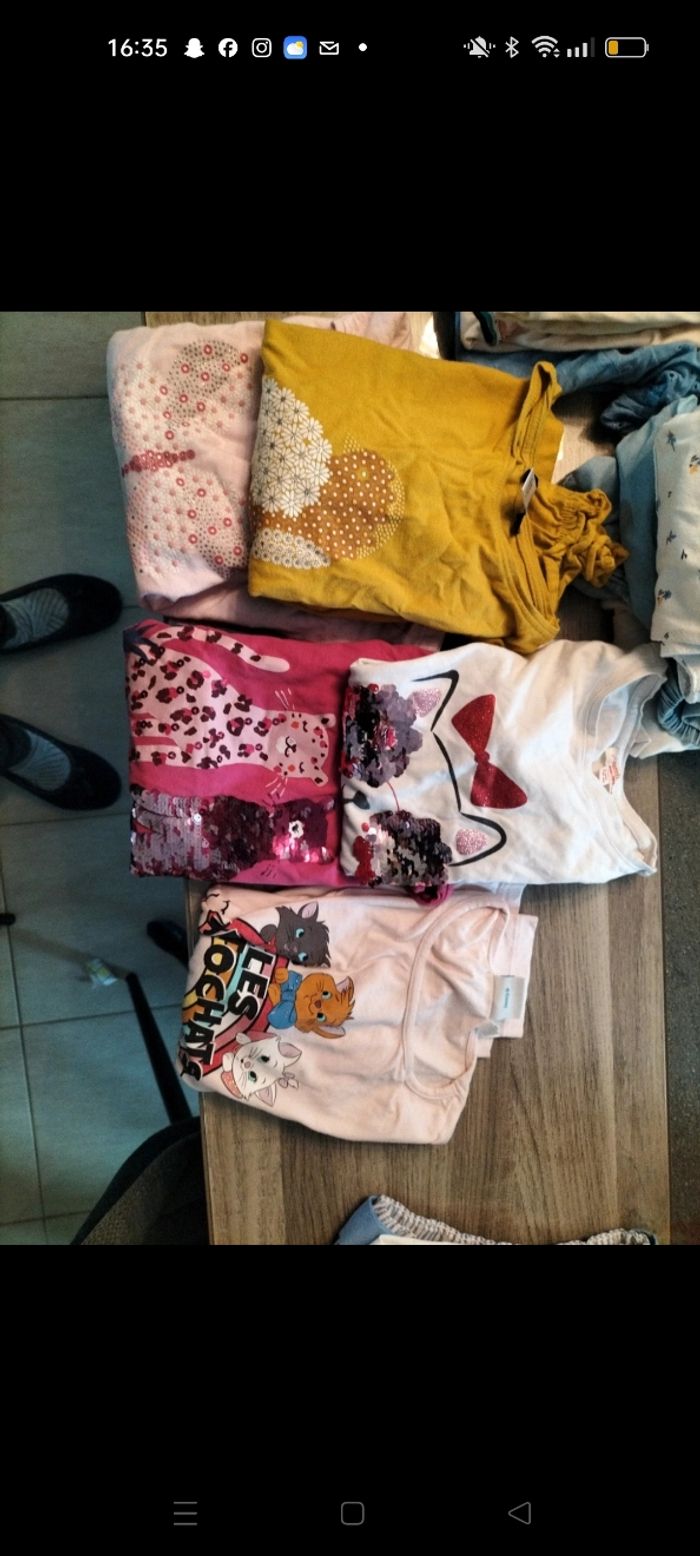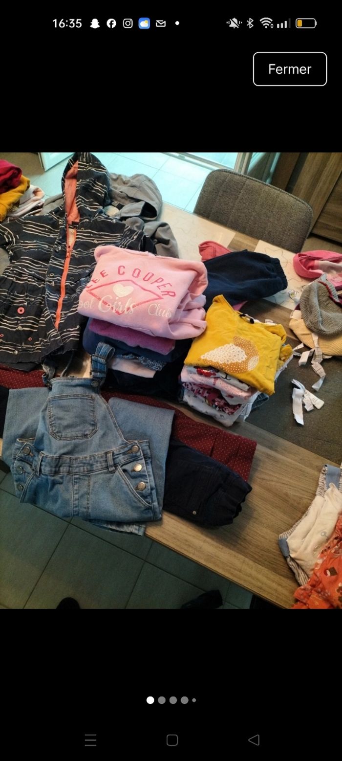 Comprends 2 manteaux sergent major 2 pantalon neuf Okaïdi 1 salopette jeans longue et une short blanche 1 sweat lee Cooper un tout doux Okaïdi et 1 sergent major tout neuf avec 1 flocon et d autres pulls 4 t shirt manches longues Okaïdi dpam et 4 courtes 1 gilet blanc Okaïdi...