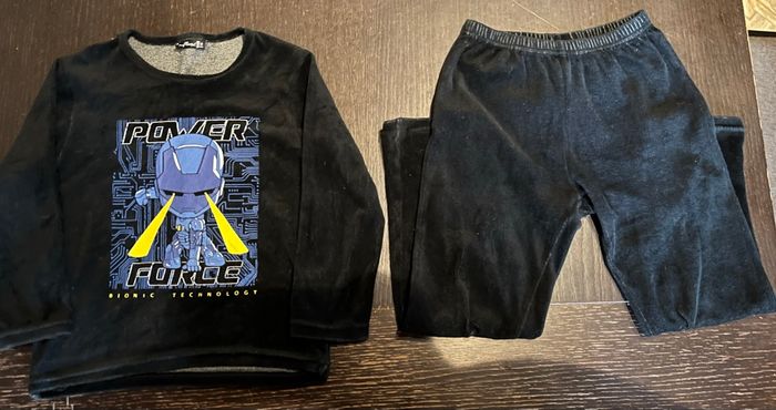 Je vends ce pyjama enfant composé d'un haut à manches longues et d'un pantalon. - Type de produit : Pyjama - Univers : Enfant - Taille : 8 ans / 128 cm - Couleur : Noir