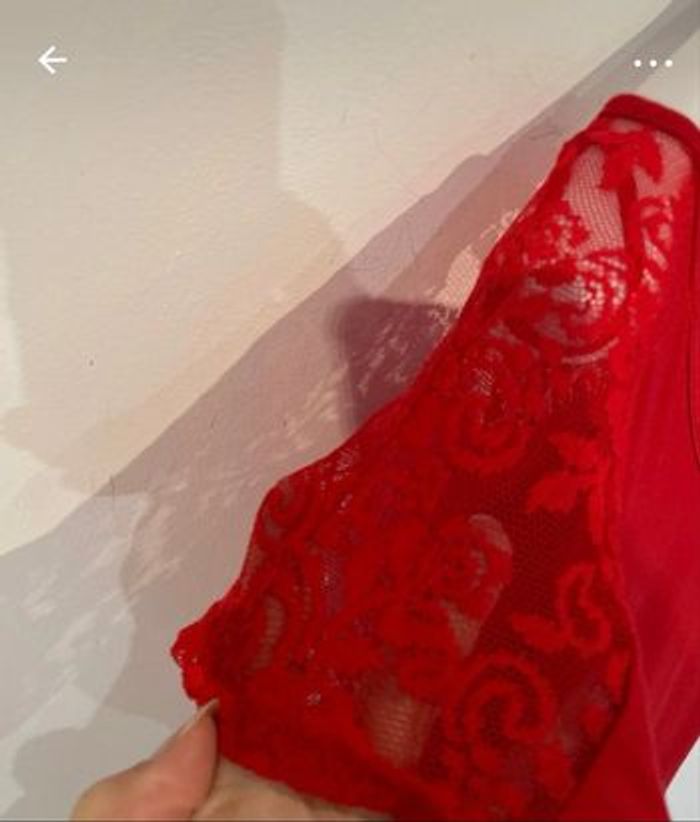 Tee-shirts long rouge T.40. Avec dentelle