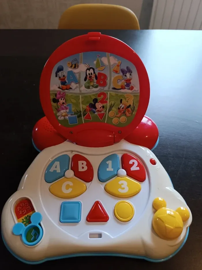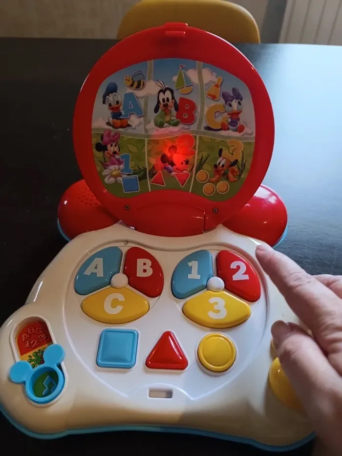 Jouet d'éveil Mon premier ordinateur DISNEY - CLEMENTONI Lumières & sons 3 modes: Lettres & chiffres Couleurs Musiques Fonctionne avec 2 piles AA (fournies) BON ETAT Allez voir mes autres ventes!